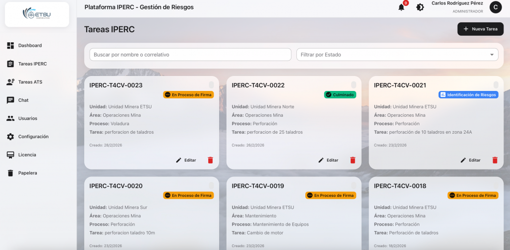 IPERC System transforma la seguridad reactiva en preventiva. Un ecosistema auditable, configurable y accesible desde cualquier punto de la operación.